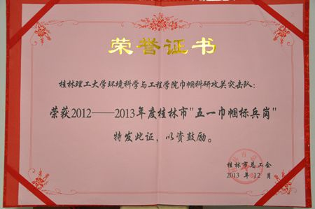 环境学院荣获“2012-2013年度桂林市五一巾帼标兵岗”称号